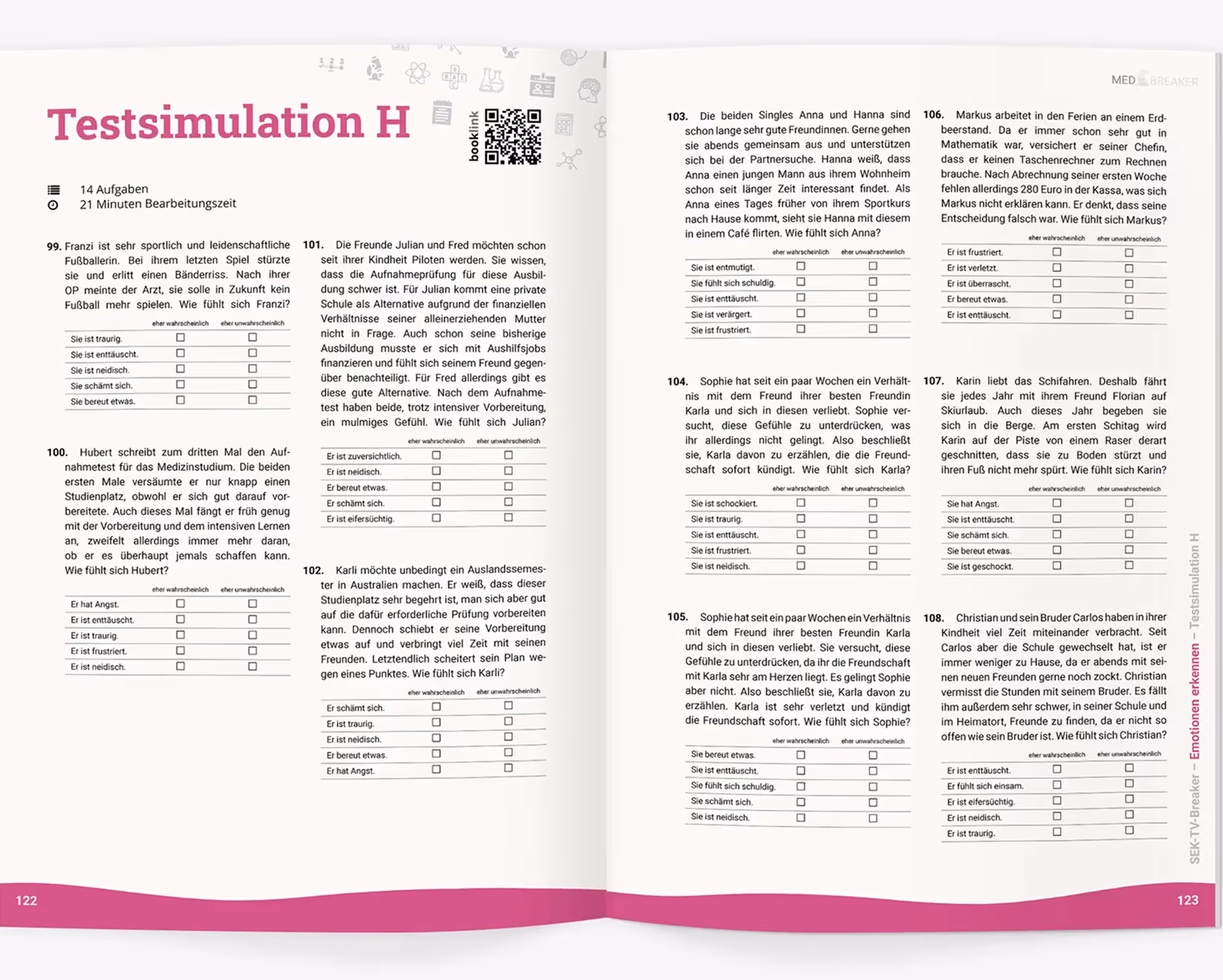 Розпізнавання емоцій входить до частини тесту «Соціально-емоційні компетенції» (SEK), яка становить 10 % від загальної оцінки MedAT.